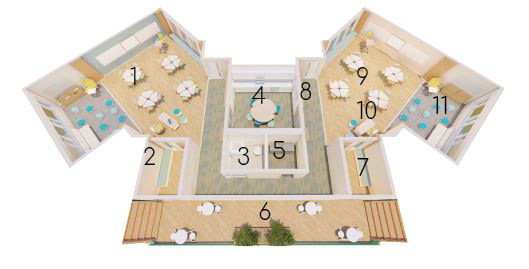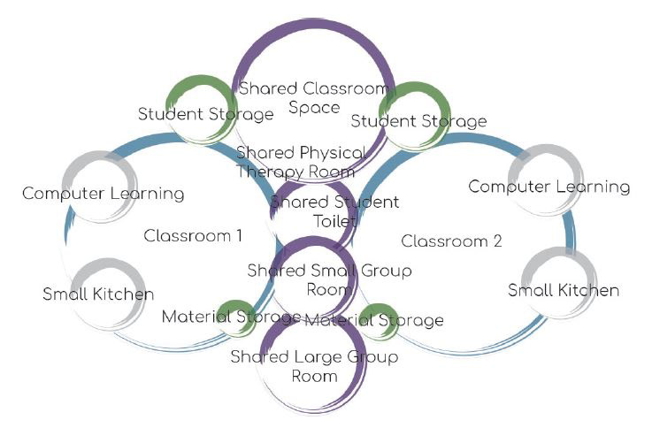 The classroom is designed so that there is not just one learning space. Each of the classrooms have a main lecture and workspace, reading lounge, student storage, teachers desk, a shared balcony and a quiet room for any students that need to take a break, then a shared bathroom, and group room.