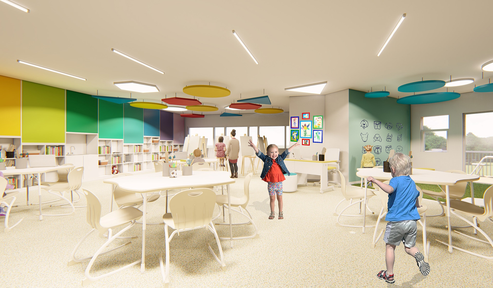 Ferebee-Hope Elementary School has been closed since 2013 but is scheduled to be leased out to a charter school in 2020. The school served 215 students in grades pre-kindergarten through 5th grade and was closed due to declining enrollment. The goal of the design is to create a space that supports the needs of special needs students and students in the general education department. This inclusive school will focus on the concept of well-being and defining stimulating environments in all areas of the educational space. Studies have shown that both general and special education students thrive when put into the same learning space. The goal of this design will be to create a flexible learning environment fully equipped to meet any child’s needs, where special education and general education student’s studiousness and creativity thrive.